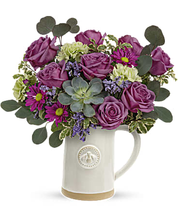 Make Mom feel like the Queen Bee she is with this charming bee-embossed pitcher and Mother’s Day floral arrangement! The glazed stoneware design is food safe for years of enjoyment and makes the perfect partner for a fresh, garden-inspired rose bouquet on her special day.